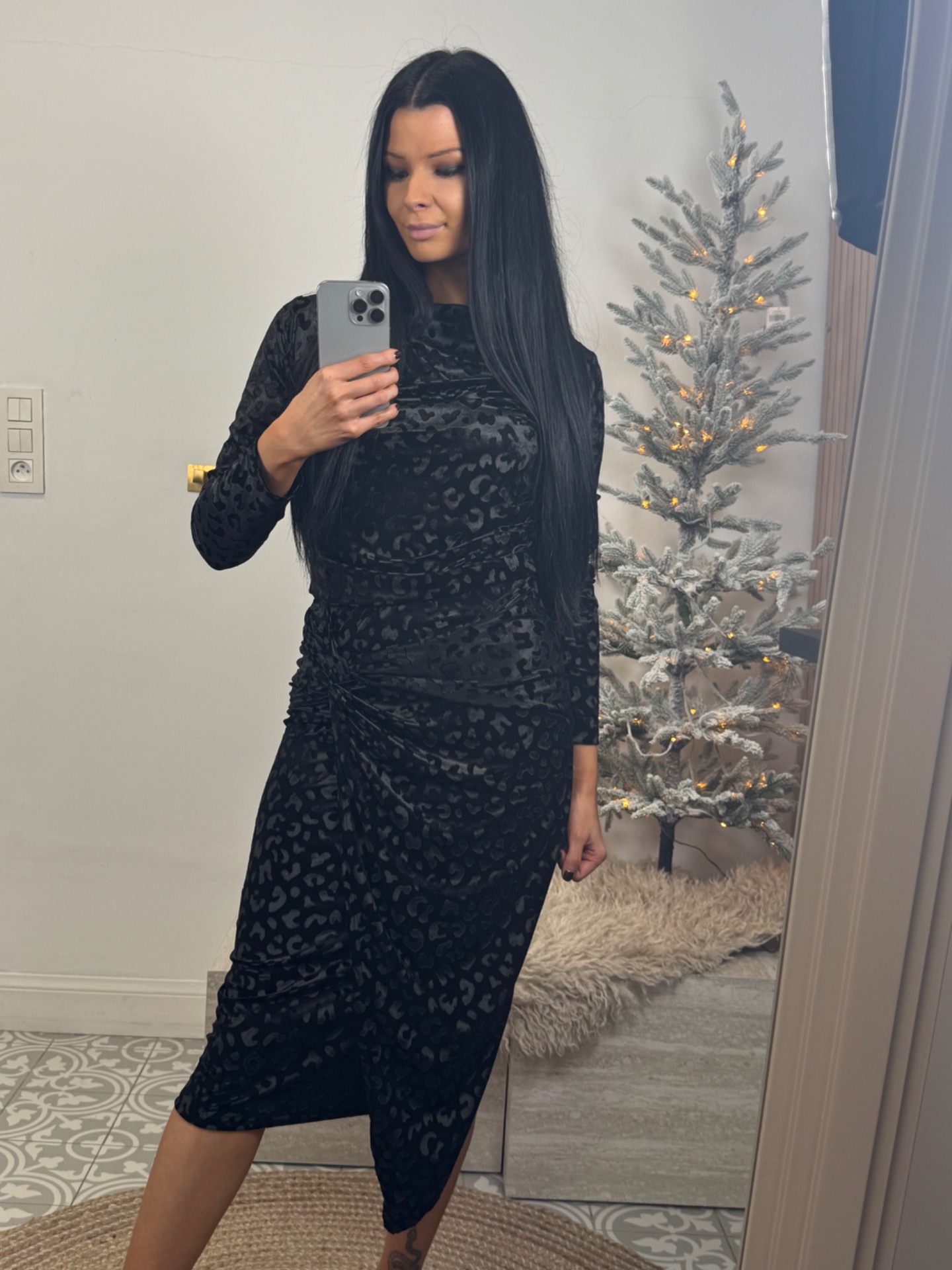 Velvet leopard set black