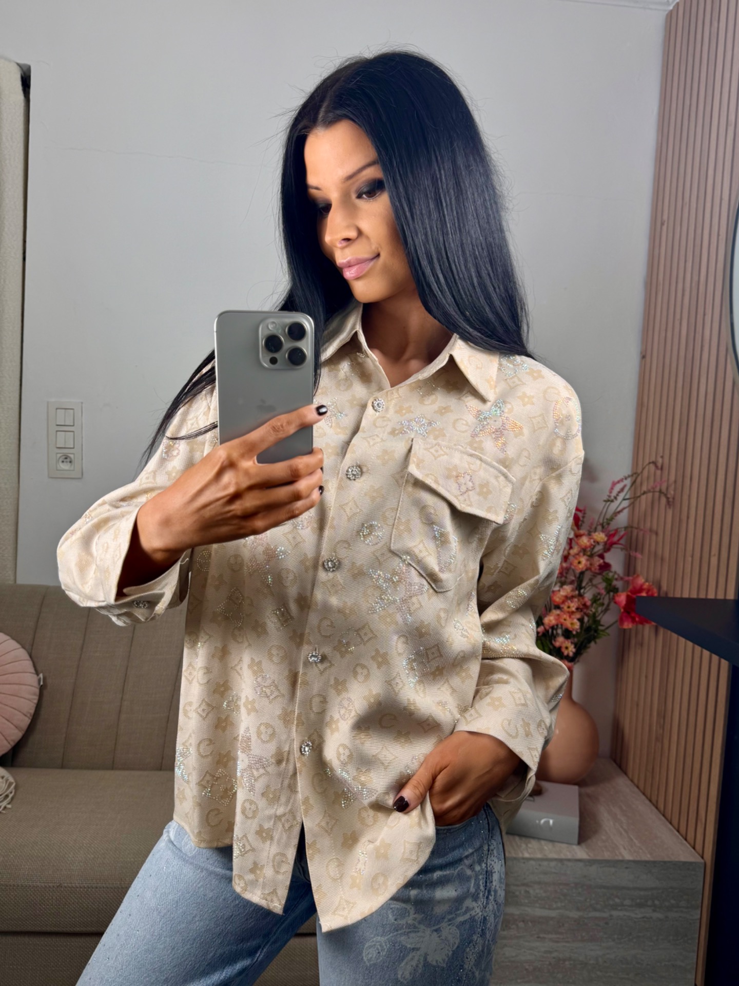 prectige hemd blouse met steentjes. TU past tot maat 44.