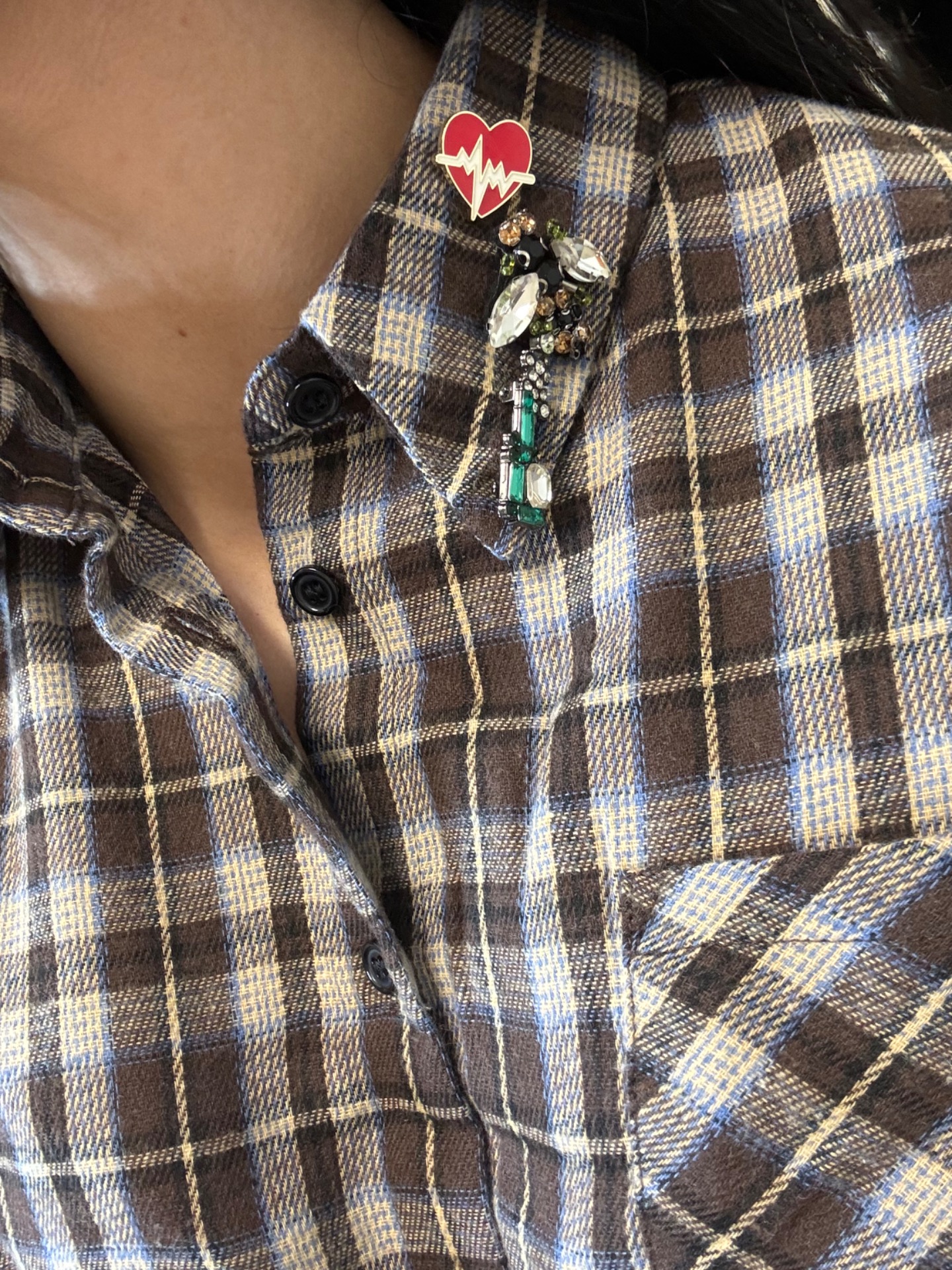 Geruite korte blouse met subtiel glitterdetail aan de kraag.