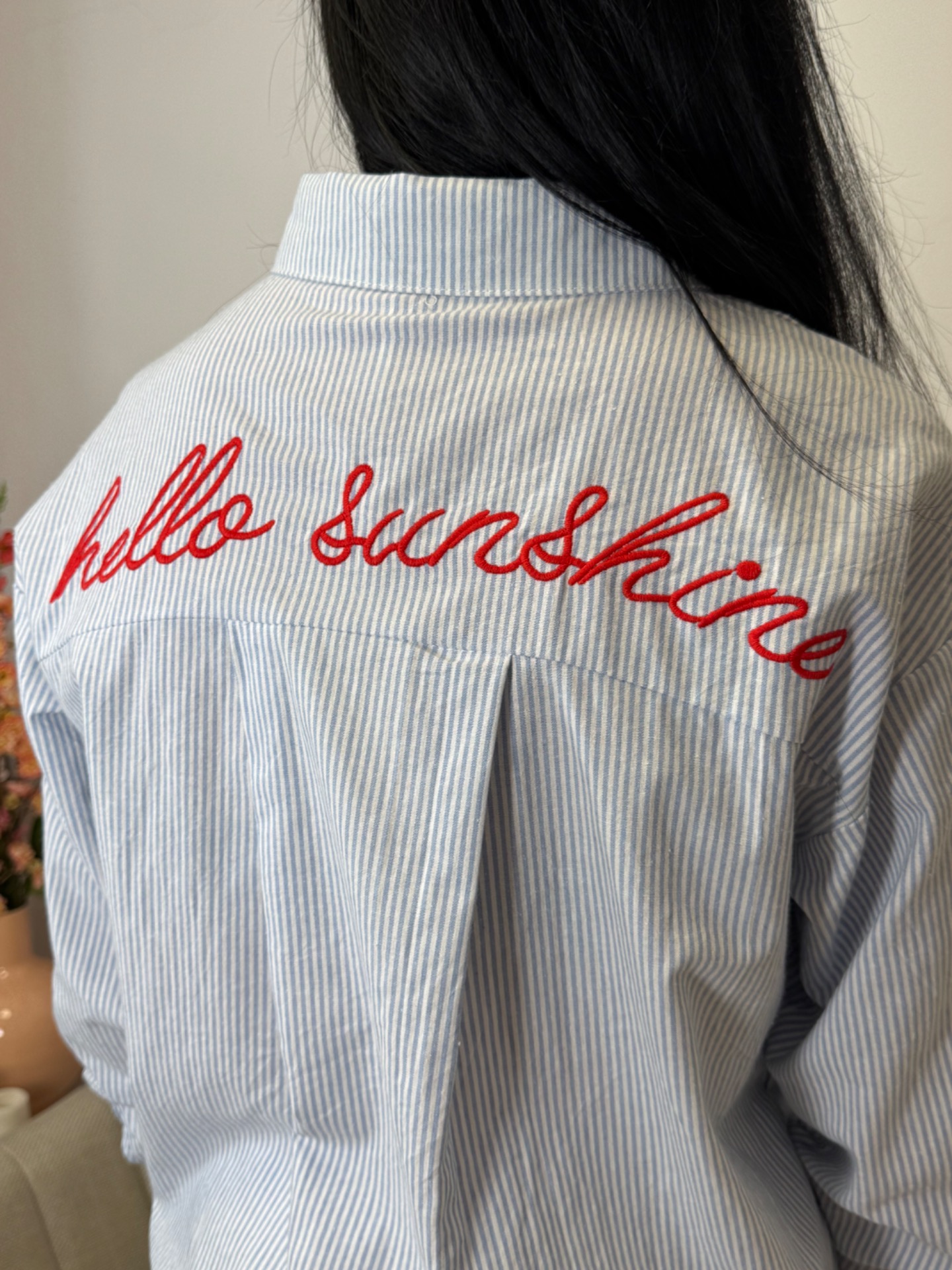 hemd blouse met opschrift op de rug. s/m past tot maat 38. m/l past tot een kleine 44.