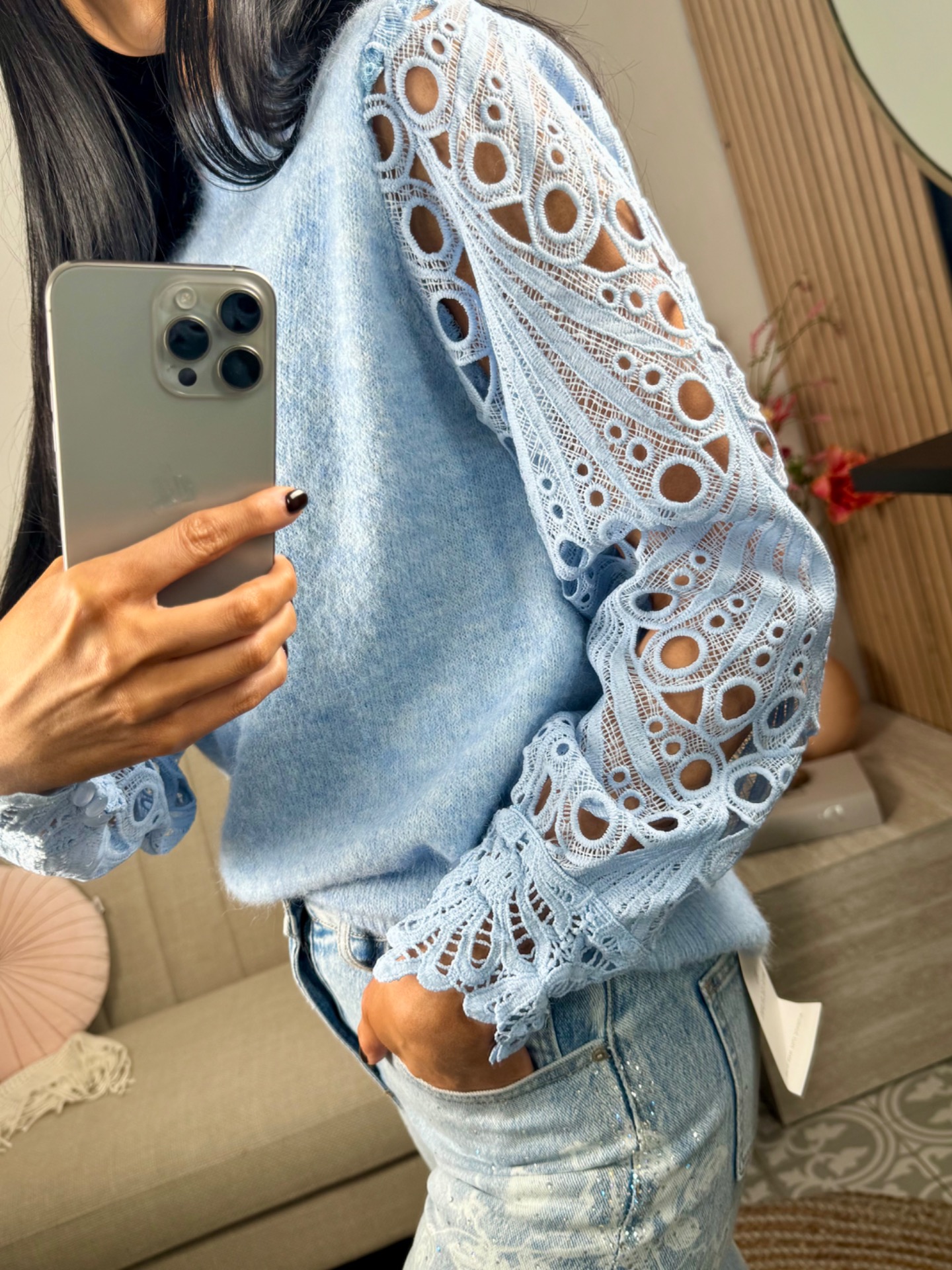zachte knit met een hogere nek. valt iets korter. 8% wol. prikt niet. TU past tot maat 40.