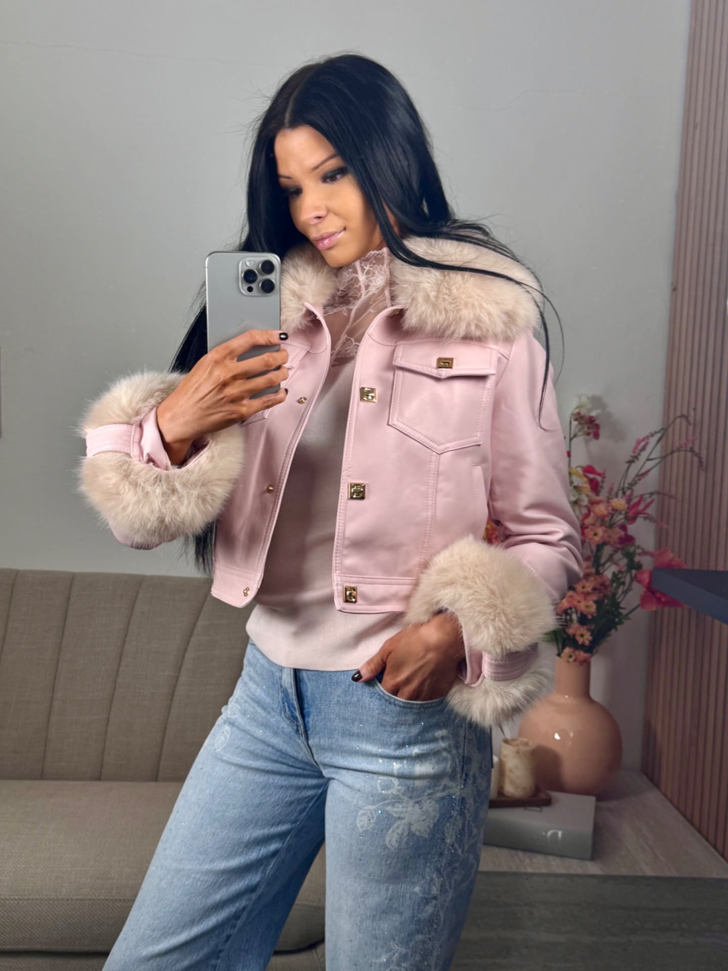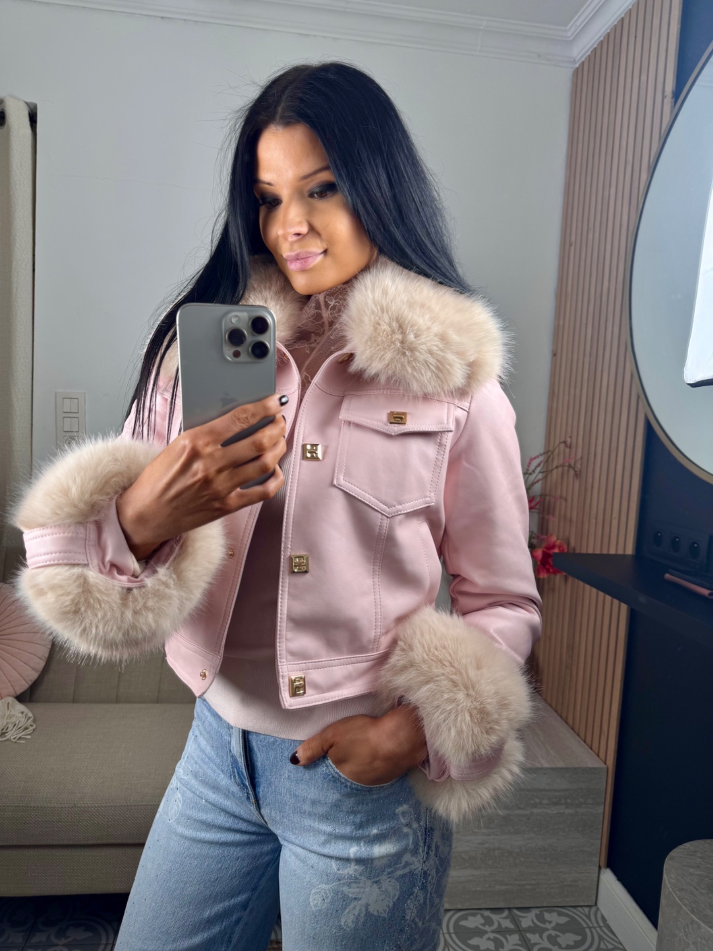 Trendy roze jasje met afneembare pels en teddy binnenkant. maten vallen normaal uit.